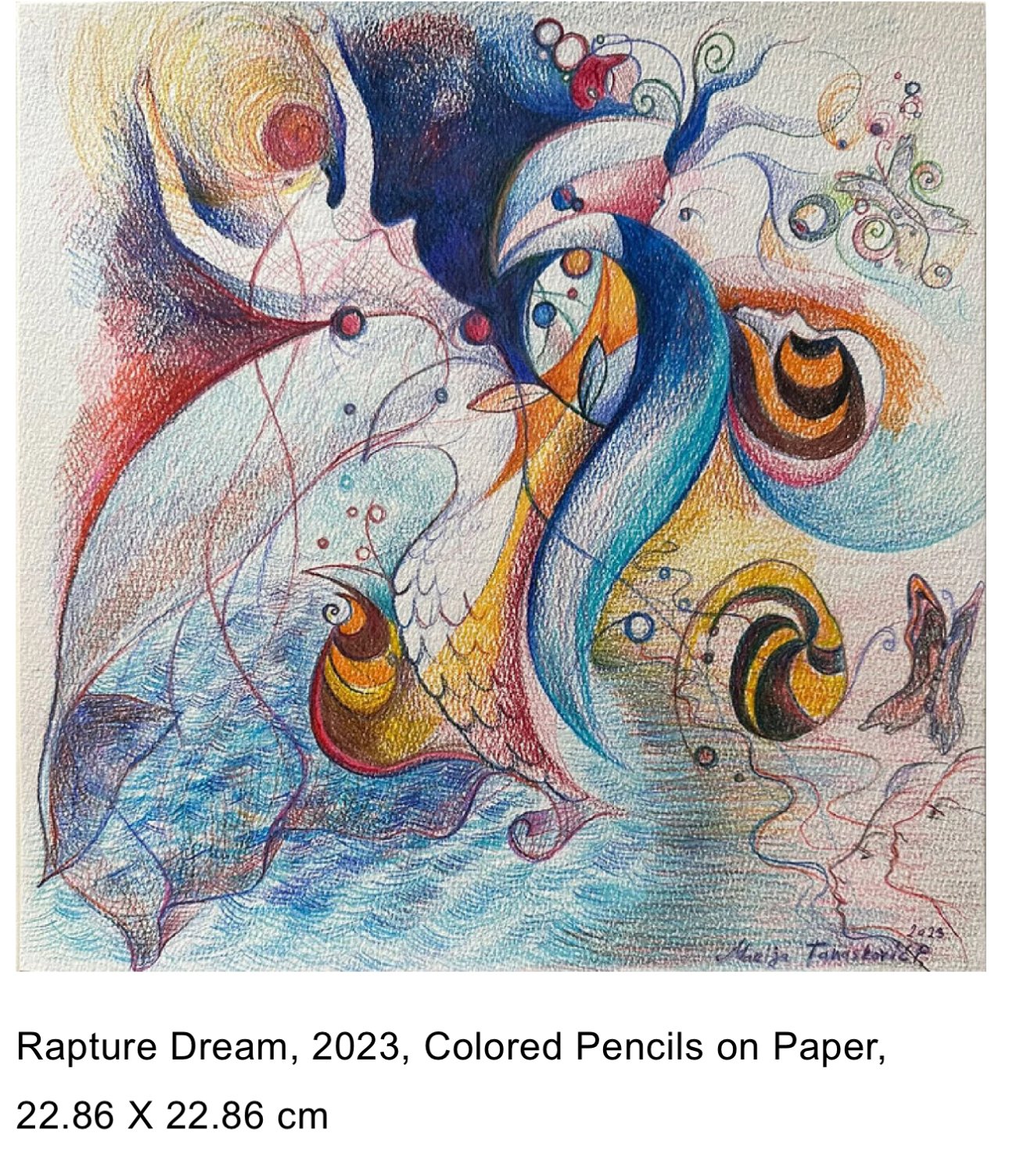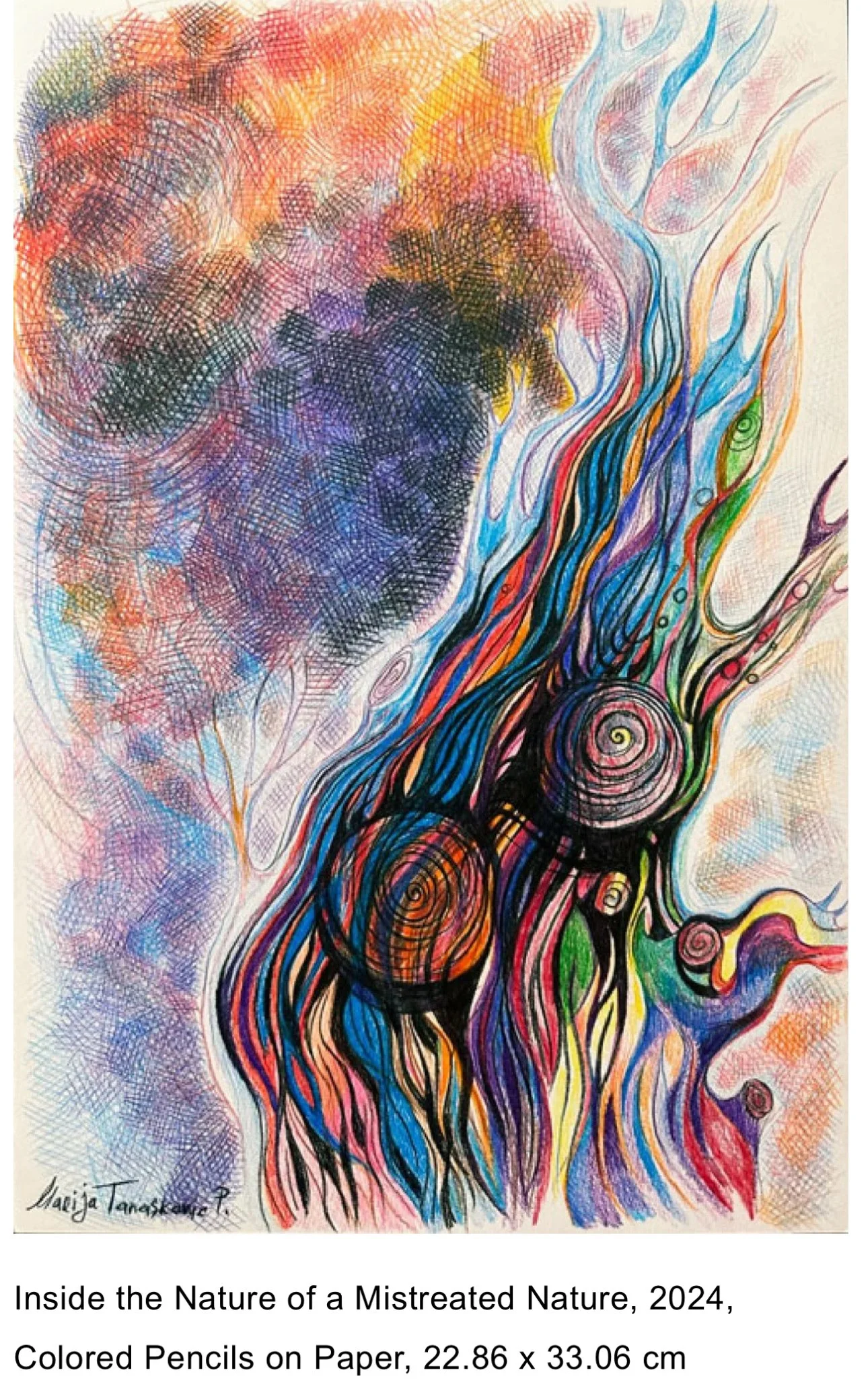 Marija Tanaskovic Papadopoulos’s work is a triumph of visual transcendence, a compelling testament to the power of art to channel spiritual energy and beauty into the world. Her art is rooted in a profound understanding of both traditional and digital mediums, creating a fusion that is as technically adept as it is spiritually potent. This synthesis of past and present—oil on canvas alongside digital sculpture—is the hallmark of her style, which is immediately recognizable for its fluid lines, vibrant colors, and intricate, symbolic compositions. Her artworks convey an energetic vibrancy that seems to pulse from within, inviting viewers to move beyond mere visual engagement and into a deeper, almost meditative state.What strikes the viewer first about Marija's art is her dynamic use of color and line. Her works are filled with swirling, undulating forms that seem to defy the boundaries of their medium. Her palette, a radiant symphony of colors, often recalls the luminous hues of stained glass, yet her approach is contemporary, grounding her works firmly in the present. In her paintings and drawings, the lines do not simply outline forms; they dance, twist, and shimmer, acting as conduits for energy. Marija has a clear sensitivity to the rhythm of lines, using them to evoke movement and emotion in a way that feels both abstract and narratively rich. Her lines are reminiscent of Wassily Kandinsky’s theory of color and form as expressive agents of the spiritual, yet she moves beyond Kandinsky in her embrace of both natural and metaphysical imagery.