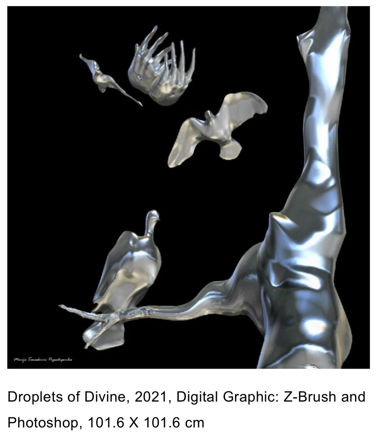 In “Seed of Will,” there is an organic quality that recalls the interweaving of plants and the flowing nature of water. The work hints at the cyclical, almost cosmic nature of existence, yet it is imbued with a personal vision that is unmistakably Marija Tanaskovic Papadopoulos own. Her forms resonate with the viewer on an intuitive level, embodying a sense of growth, resilience, and transformation. Similarly, “Inside the Nature of Mistreated Nature” draws on environmental themes, but rather than presenting a bleak portrayal of decay, she fills the work with layers of hope and healing. There is an implicit narrative woven into the colors and forms, suggesting that nature's resilience and beauty endure despite human interference. This subtle interplay of symbolic resonance is where Marija Tanaskovic Papadopoulos’s genius shines.Marija Tanaskovic Papadopoulos’s sculptures bring an added dimension to her oeuvre, translating the ethereal qualities of her paintings into tactile forms. Her works in Z-Brush, an advanced digital sculpting program, exhibit a fluidity that mirrors her drawn lines. The sculptures appear to be caught in motion, a frozen dance where every curve and angle is meticulously crafted to resonate with the surrounding space. This quality of suspended motion can be seen in works like “Phoenix,” where the mythical creature is not merely depicted but seems to be in the act of rising, embodying rebirth and strength. Her ability to convey a sense of movement and vitality through both virtual and physical forms aligns her with artists like Umberto Boccioni, who sought to express the dynamism of modern life in sculpture. However, unlike the raw energy of Boccioni’s futurism, Marija’s work has a spiritual undertone that resonates with the quietude of Rodin’s contemplative figures.One of the most captivating aspects of Marija Tanaskovic Papadopoulos’s art is her dual mastery of light and shadow. In works like “Heaven’s Gate,” her nuanced handling of light becomes a narrative device, illuminating certain forms while casting others into shadow. This manipulation of light creates a visual rhythm that guides the viewer’s eye through the composition, evoking an almost otherworldly atmosphere. It is as if she is painting not just with pigment but with luminescence itself. The luminous quality of her colors, coupled with the ethereal forms she conjures, creates an experience that is both visceral and mystical. This approach to light, in its emphasis on spiritual transcendence, aligns her with the Symbolist movement, echoing artists like Odilon Redon, who also sought to render the unseen.In “Air of the Holy Trinity,” her ability to infuse abstract forms with spiritual significance is on full display. The composition evokes a sense of sacred geometry, using curvilinear forms to represent the interconnectedness of the divine. Yet, Marija does not confine herself to overt religious symbolism; instead, she imbues universal shapes with spiritual meaning, allowing viewers of all backgrounds to find their own interpretations. This universality, coupled with her highly personal aesthetic language, makes her work both accessible and profound. Like Hilma af Klint, whose works were deeply spiritual yet remained grounded in abstraction, Marija Tanaskovic Papadopoulos communicates complex, metaphysical ideas through the language of color and form.Her digital works, particularly those created in Z-Brush, extend her artistic philosophy into the virtual realm, blurring the boundaries between reality and digital imagination. These works are not merely digital imitations of sculpture but exist as fully realized entities in their own right, expanding the possibilities of what sculpture can mean in the modern age. Her piece, “Sophisticated Wings,” exemplifies this: the sculpture appears almost fluid, as if captured in a moment of transformation. The digital medium allows her to explore forms that would be challenging in physical media, enabling her to push the limits of her creativity. In this way, she is comparable to modern pioneers like Daniel Arsham, who merge physical and digital realms to question the nature of art and perception.In her landscapes and nature-inspired works, Marija continues to demonstrate a reverence for the natural world, yet her style is never static or confined by realism. “Droplets of Divine,” for instance, is a work that exists in the liminal space between representation and abstraction. Here, she captures the essence of water—not merely as a physical substance but as a symbol of life, purity, and the sublime. This work, and others like it, seem to be infused with a sense of ecological consciousness, urging viewers to reconnect with the environment in a manner that is both reverent and urgent.As an artist, Marija Tanaskovic Papadopoulos also utilizes photography, a medium she elevates from mere documentation to an artistic experience. Her photograph, “Rapture Dream,” captures a moment that feels at once intimate and universal, suggesting an unseen narrative beyond the frame. Her photographs are deeply atmospheric, often depicting landscapes bathed in ethereal light or shadow. The interplay of light and landscape in her photography resonates with the same mystical quality found in her paintings, imbuing her images with a sense of timelessness.Marija Tanaskovic Papadopoulos stands as a remarkable artist whose work defies easy categorization. Her ability to bridge traditional and digital media is matched only by her deep philosophical approach to art as a medium of energy and symbolism. Her art moves beyond mere aesthetics, serving as a conduit for beauty, harmony, and spiritual awakening. Marija Tanaskovic Papadopoulos’s work is a testament to the power of art to touch the unseen realms of human consciousness. Like the masters before her, she has an innate ability to transform paint, digital pixels, and sculpted forms into symbols tha